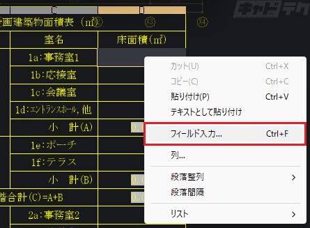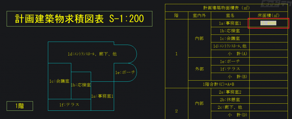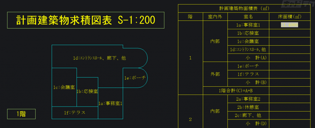 (例)閉じたポリラインから㎡(平米)を表示して、面積表を作成する。