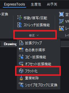 Express Toolsが使用できる場合は、FLATTEN [フラット化]コマンドで