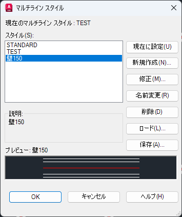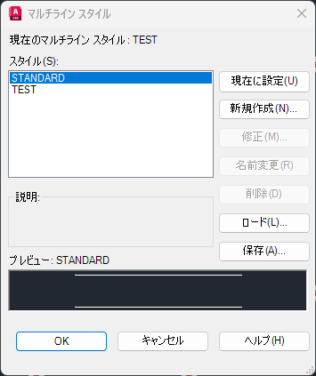 [削除]:現在選択されているマルチライン スタイルを[スタイル]一覧から
