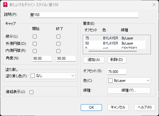 ※図面で使用しているマルチライン スタイルの要素やマルチラインの