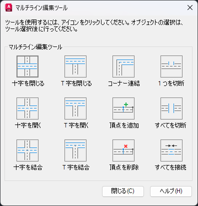 マルチラインをダブルクリックすると、[マルチライン編集ツール]