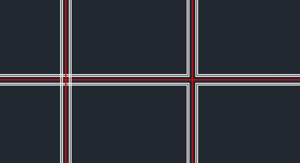 2 つのマルチラインの間に開いた十字型の交差を作成します。