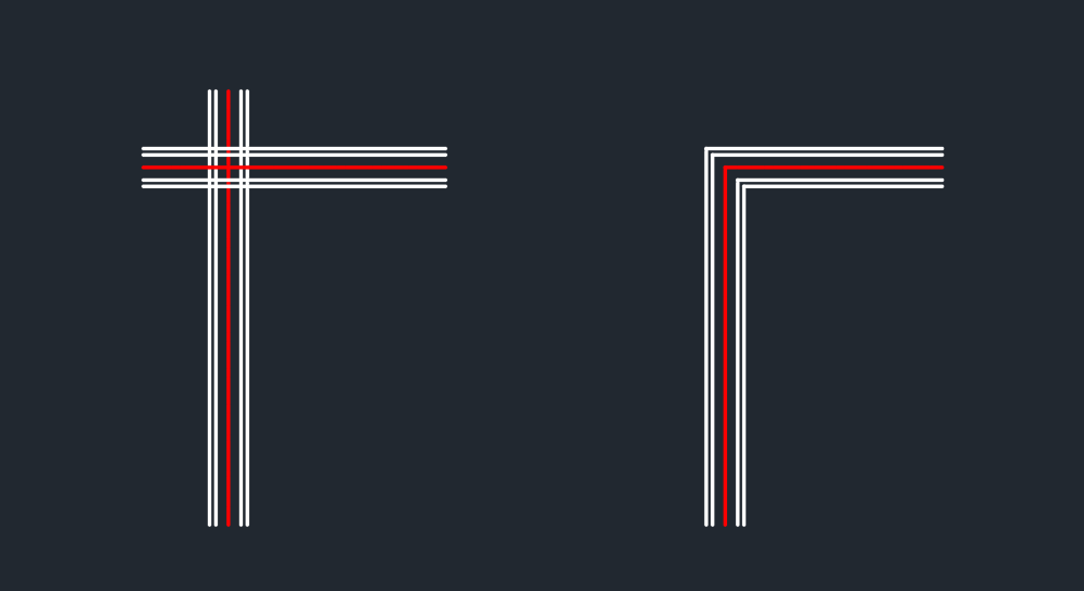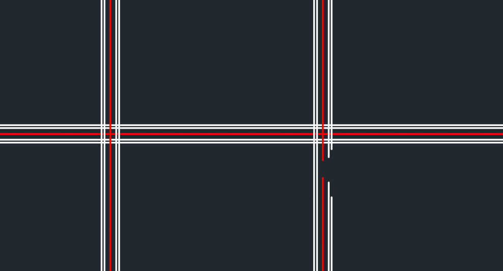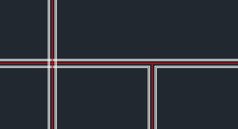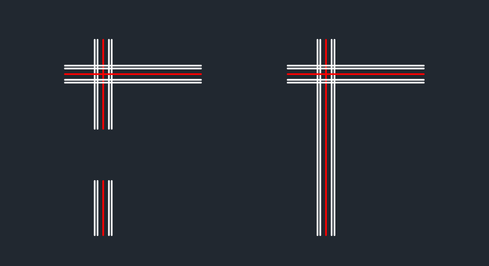 2つのマルチライン間に開いたT字型の交差を作成します。