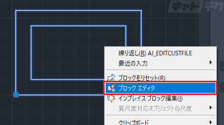 ・図面に挿入しているブロックを選択→右クリックメニュー[ブロックエディタ]