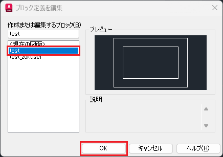 ブロック名を選択→[OK]