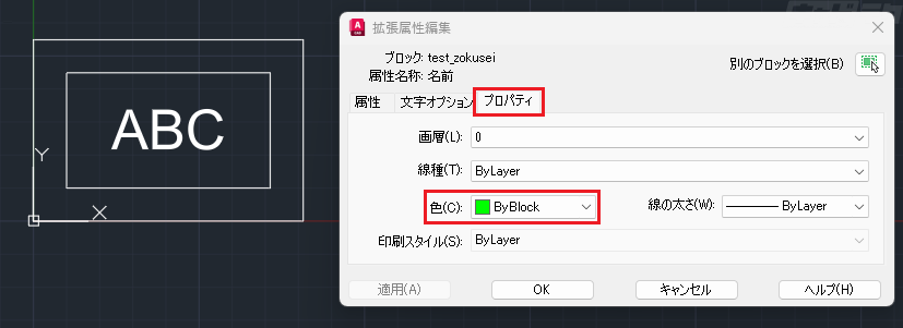 図面へ挿入後に個別変更したい図形のプロパティをByBlockに設定