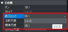 [表示ロック]を[いいえ]に変更します